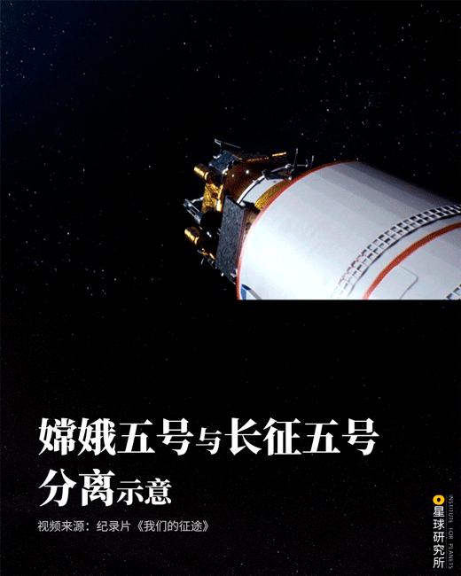 (嫦娥五号与长征五号分离示意,视频来源@纪录片《我们的征途》)