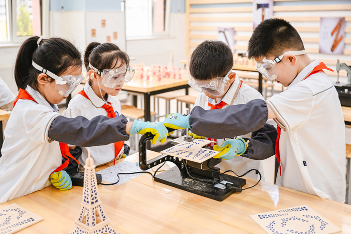 金谷德艺小学坚持“儿童站在学校正中央”的教育哲学,通过推动系统化、个性化的“1+X”课程体系,进一步整合校内外优质教育资源,借助课后延时服务,开展48个社团班、54门混龄选修课,不断为学生全方位成长赋能。