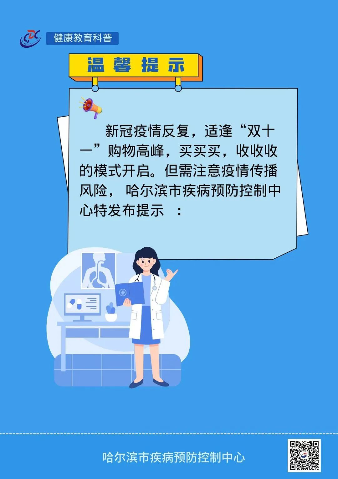 11日,哈尔滨市疾病预防控制中心发布“双11”安全接收快递提醒。