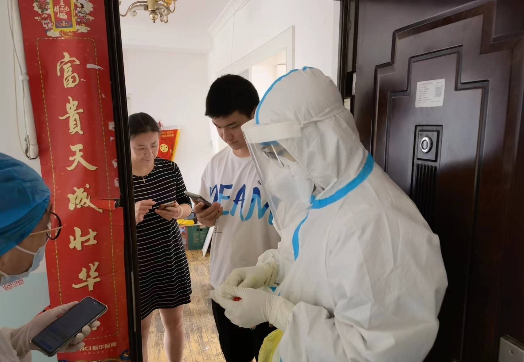 乌鲁木齐市委政法委综治三科干部曹家铭下沉到乌市天山区大小西门街道办事处建设西路社区金碧华府小区。该小区只有 1 栋楼共 31 层,2 个单元里住着147 户。给全体居民采集一次核酸,曹家铭大概需要2个小时,采集结束后,防护服里的衣服早已湿透。