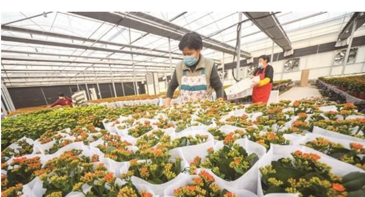 党的二十大报告提出,全面推进乡村振兴,发展乡村特色产业,拓宽农民增收致富渠道。立冬时节,在位于汶上县苑庄镇的山东卉苑花卉种业培繁基地内,一盆盆含苞待放的长寿花生机勃勃,准备外销。当地立足特色农业,瞄准花卉种业市场,依托中央财政扶持发展壮大村级集体经济资金,打造年可繁育各类花卉种苗及成品800余万株的花卉培、繁、展、售一体基地,产品远销20余个省份,300余个大中城市,带动附近200余名群众就业,可为12个扶持村每年每村分红5万元。