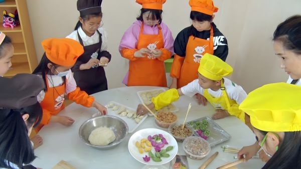 学着包饺子。