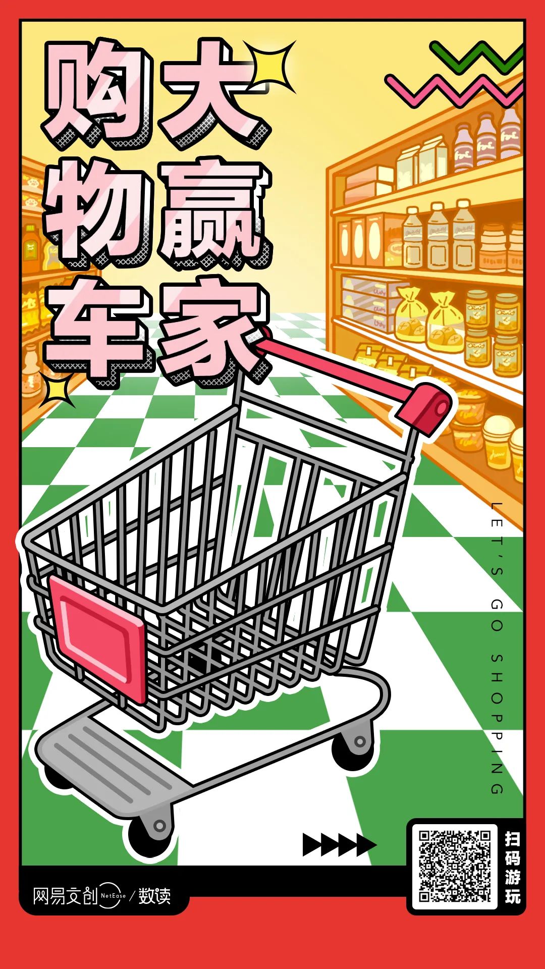 如果你也想再尽情享受一次随便消费的乐趣,长按下图并扫描二维码,开始你的购物车大作战吧!
