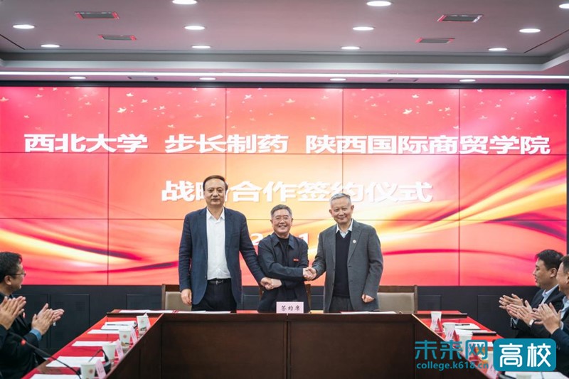 11月10日。陕西国际商贸学院与西北大学、步长制药签署合作协议。西北大学校长郭立宏,西北大学党委副书记吕建荣,步长制药总裁、陕西国际商贸学院董事长赵超,校长王正斌,党委副书记、副校长李吉友出席签约仪式,相关单位负责人参加活动。签约仪式由西北大学党委常委、副校长吴振磊主持。