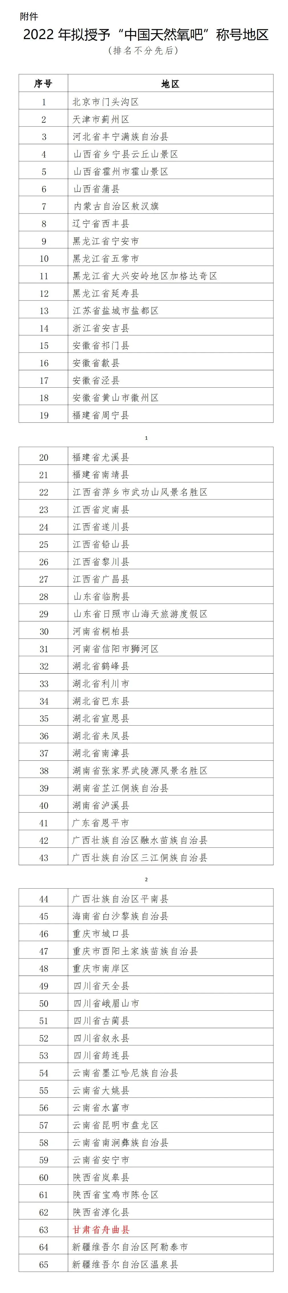 入围!“中国天然氧吧”名单出炉,舟曲上榜!