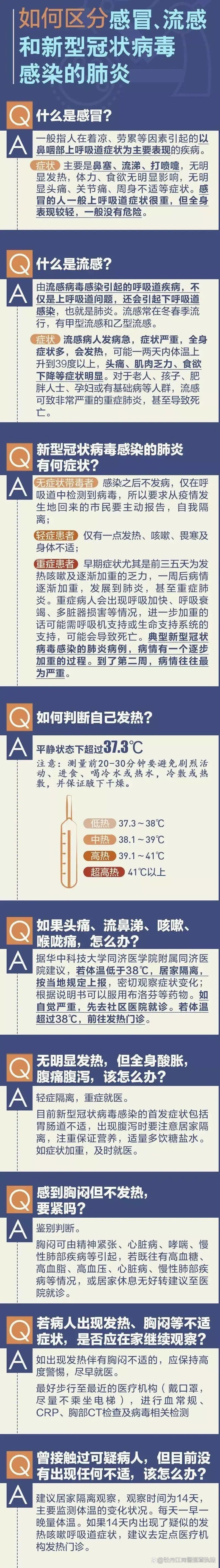 如何区分感冒流感和新型冠状病毒感染的肺炎?