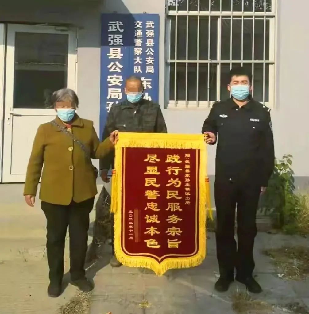 2022年11月8日,衡水市武强县东孙庄镇的杨某某把一面写着“践行为民服务宗旨 尽显民警忠诚本色”的锦旗送到了武强县公安局东孙庄镇派出所,感谢民警帮助自己找回失散13年的弟弟。