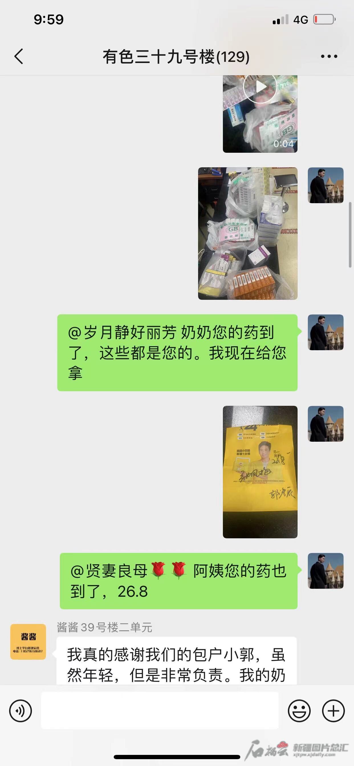 郭昊晨在微信群里为居民买药、送药。网络截图