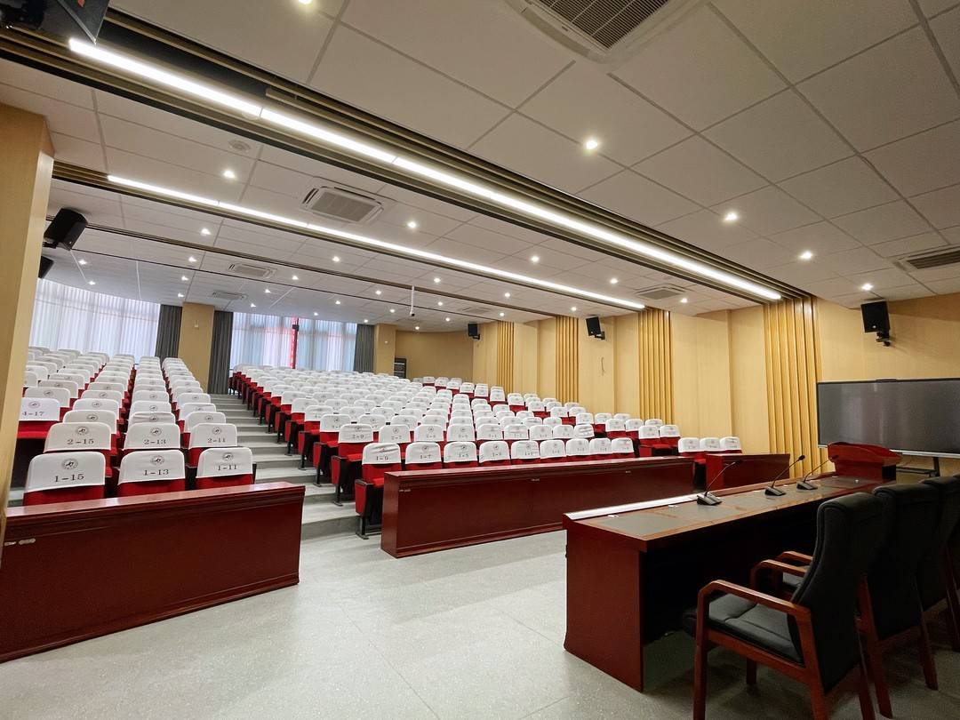 初中楼和高中楼左右对称,除了教室、教师办公室,还有会议室、录播室、教研室、合班教室等功能室。