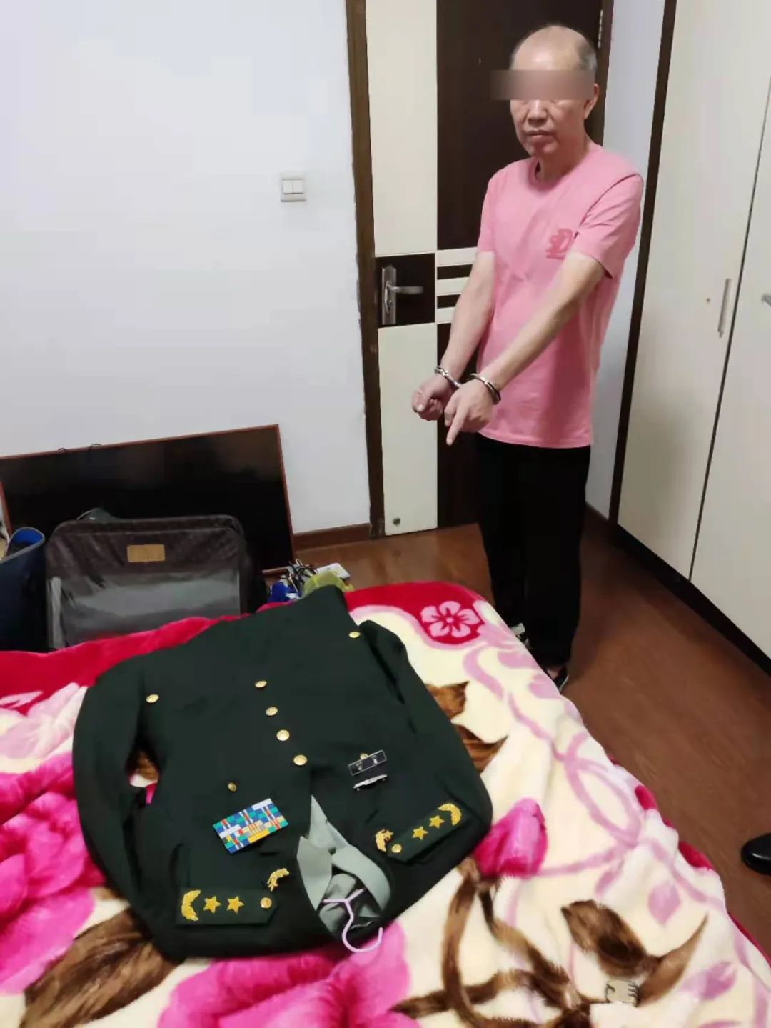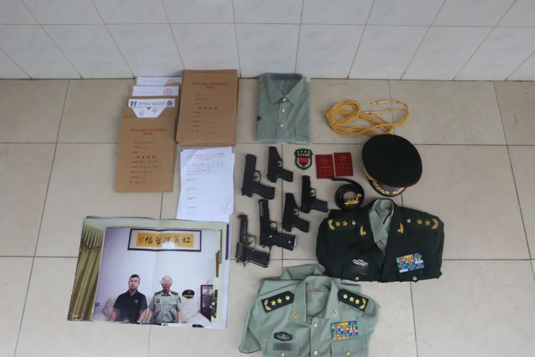 共查获军装2套、军队相关标志服饰若干