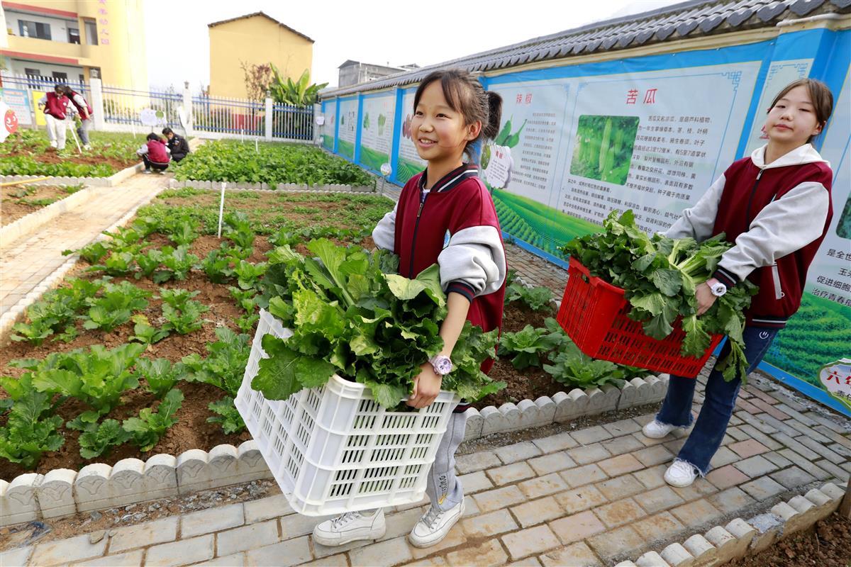 11月10日,竹山县宝丰镇黄栗九年一贯制学校学生在老师的带领下,来到校园小农场开展劳动实践活动。从播种,到管理,到收获,校园小农场洒下师生辛勤劳动的汗水,收获的不仅仅是快乐,更是对师生辛苦劳作的肯定。