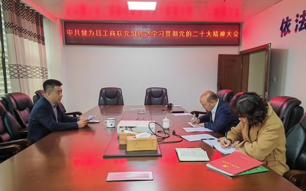 为深入贯彻落实党的二十大精神,犍为县工商联围绕“两个健康”工作主题,坚持“信任、团结、服务、引导、教育”方针,高位推进,精心谋划,迅速在民营经济领域掀起学习宣传贯彻落实党的二十大精神的热潮。