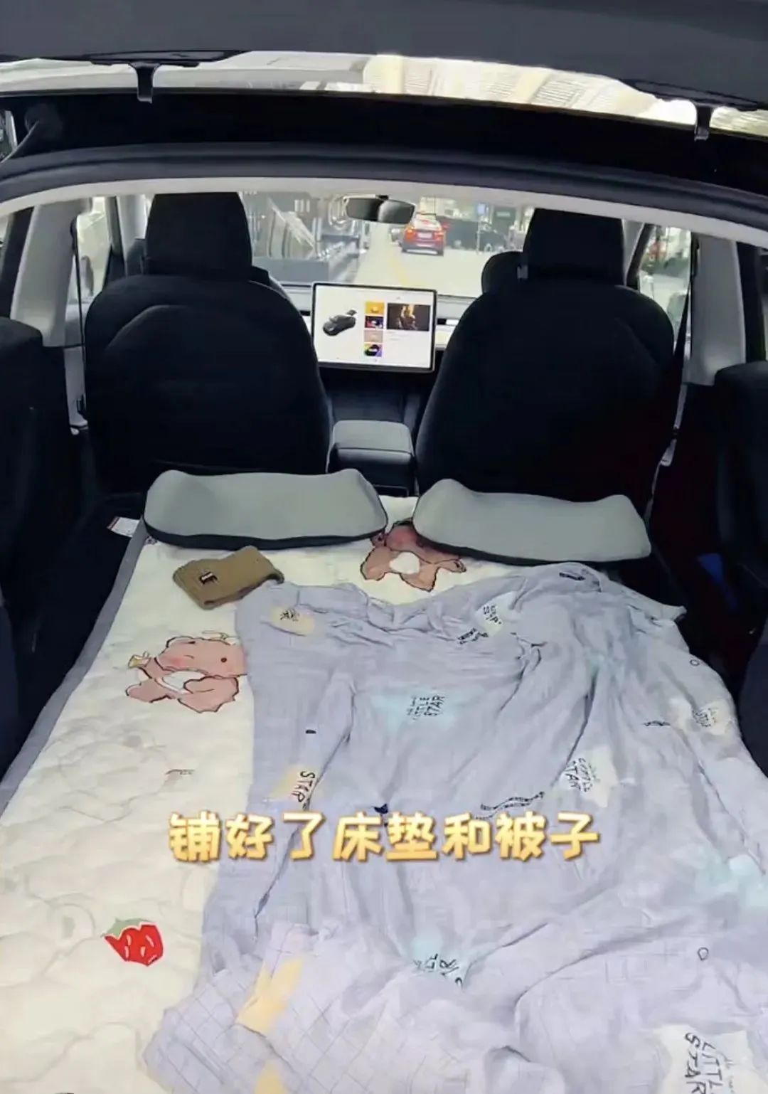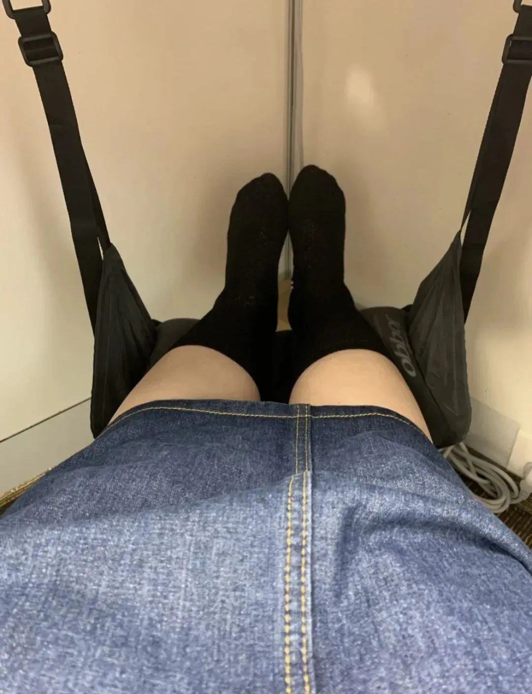 地上也无处安放,就搞个悬空的充气垫搭脚,入睡前还能荡。