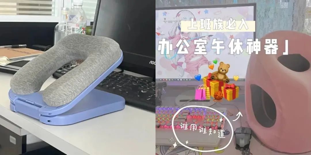 后者设备更加五花八门,除了朋友圈常见的靠枕、颈枕、趴睡枕,有些年轻人思维更灵活。