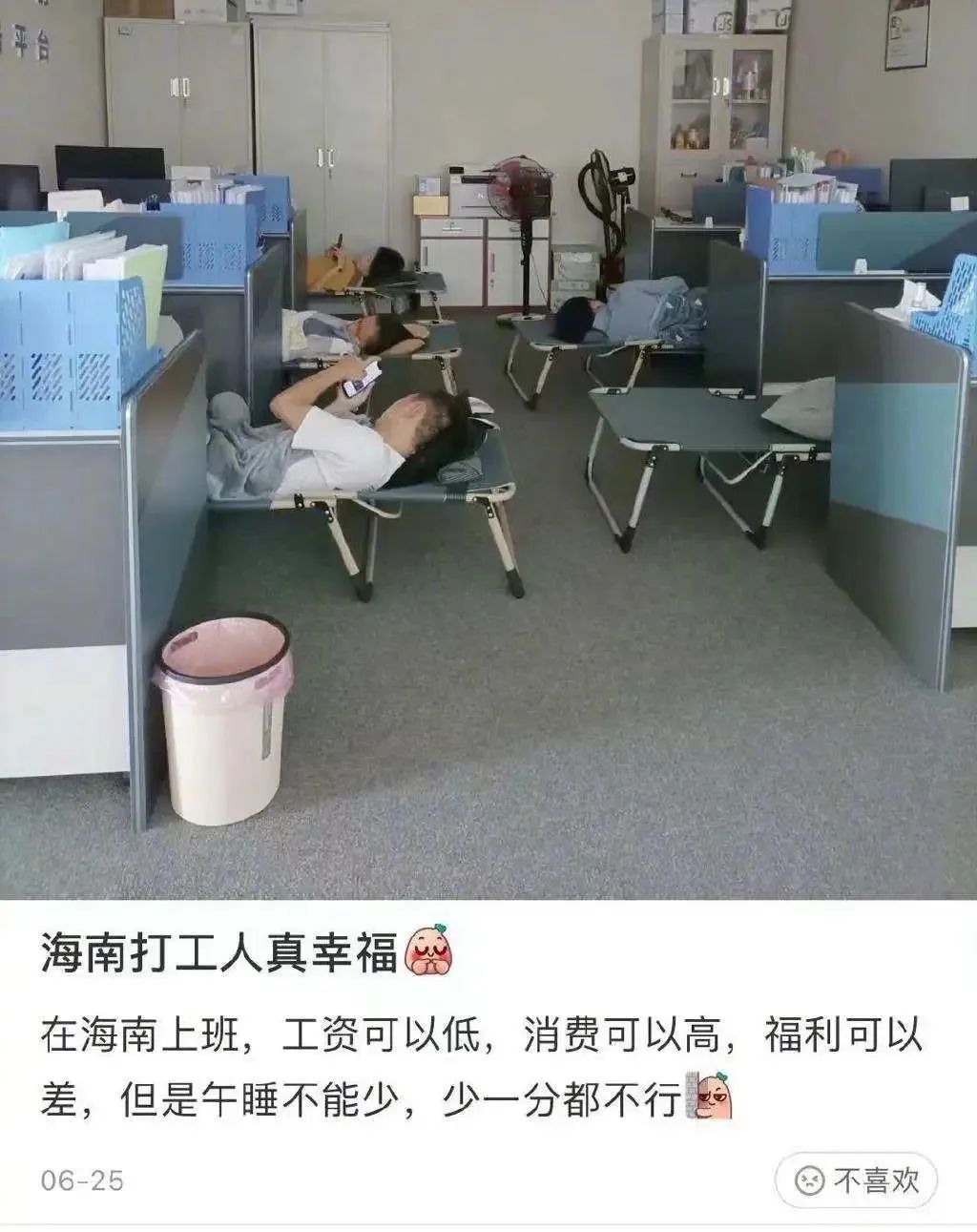 窗帘一拉,整个海南的办公楼鸦雀无声,所有人都静静躺在午休床上,睡他个天昏地暗——