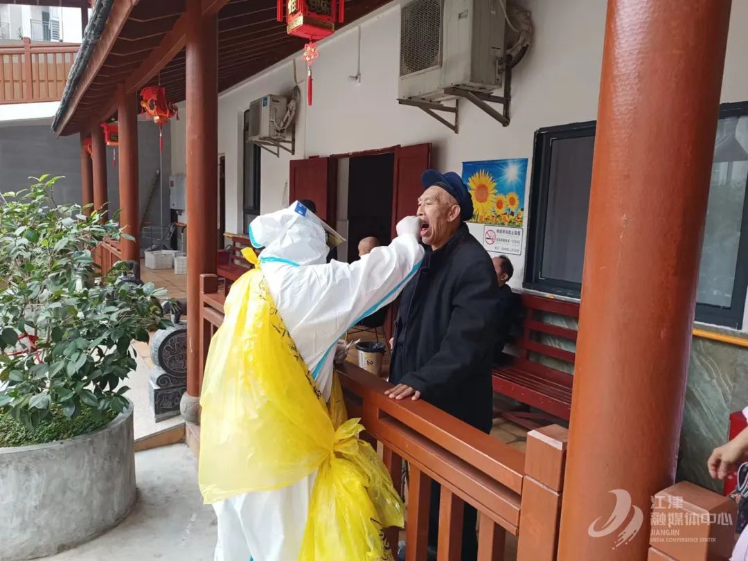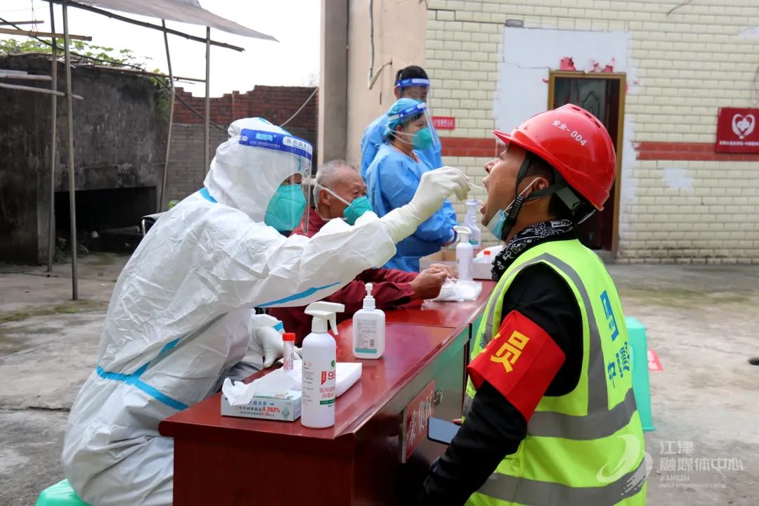 支坪镇结束核酸采集工作的医护人员为江津加油