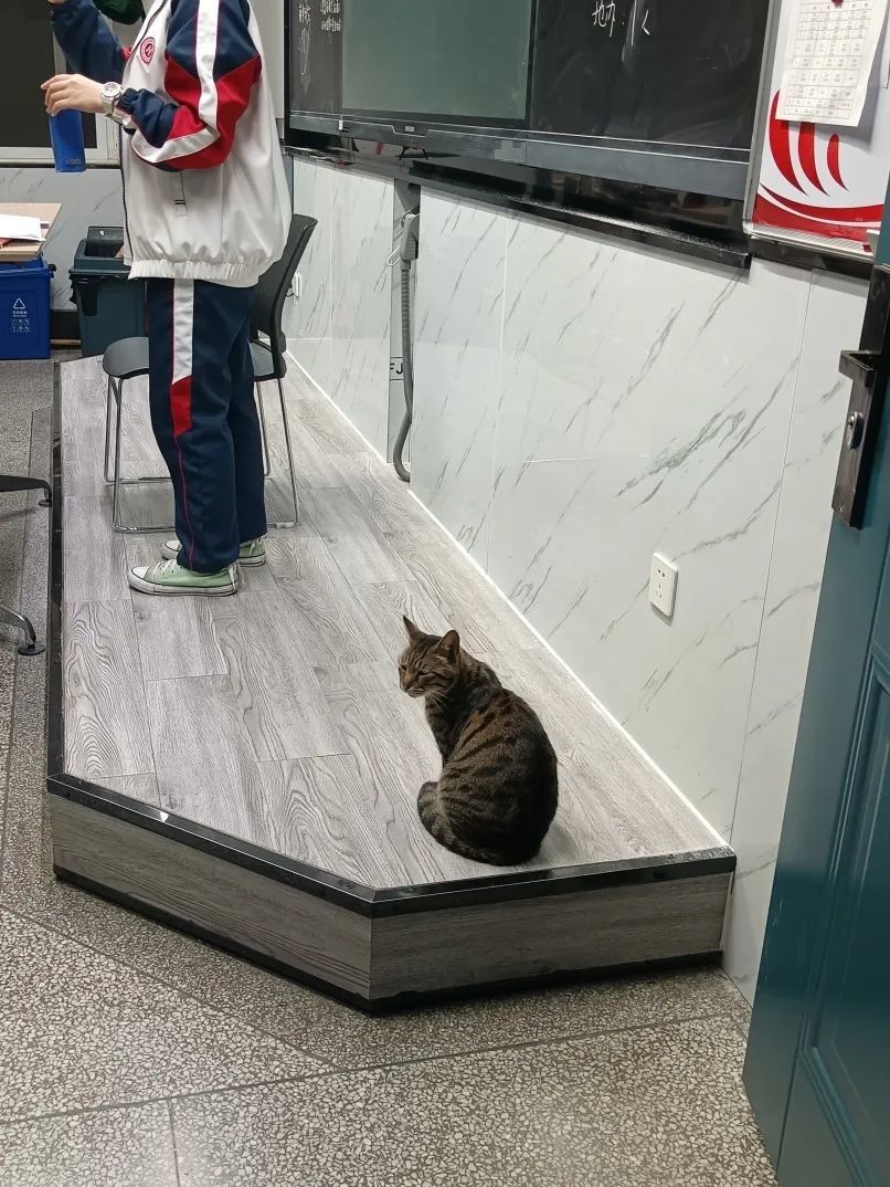 一只小猫被成功解救,但是学校还面临多个相关的难题——校园附近的流浪猫有好几只,不少学生喜欢猫,时不时会给它们投喂食物。有的猫咪胆子大,索性跑校园里来了。像刚被救出的那只猫,就喜欢在一楼走廊闲逛。据说,还有一只会在晚自修到教室门口检查巡视,同学们亲切地叫这只猫“学长”。