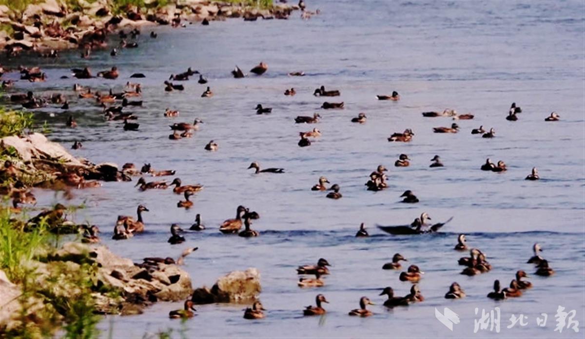 “2018年,我们偶尔能观测到中华秋沙鸭的踪迹。通过生态保护和修复,它的种群数量逐渐增加,在2022年的全省水鸟同步调查中,共观测到中华秋沙鸭200余只。”谷城汉江国家湿地公园管理处保护科科长陈伟介绍。