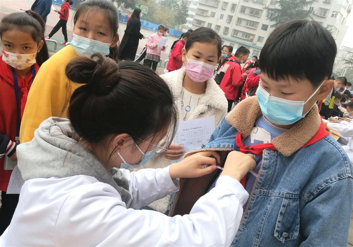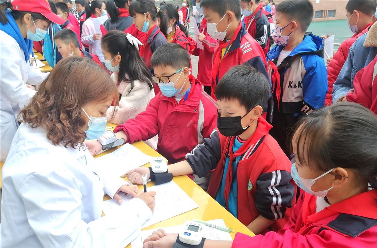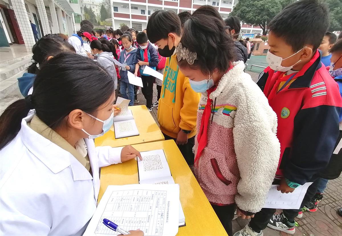 量身高、称体重、测视力……11月10日,竹山县第二人民医院医务人员忙着为宝丰镇施洋小学学生进行健康体检。