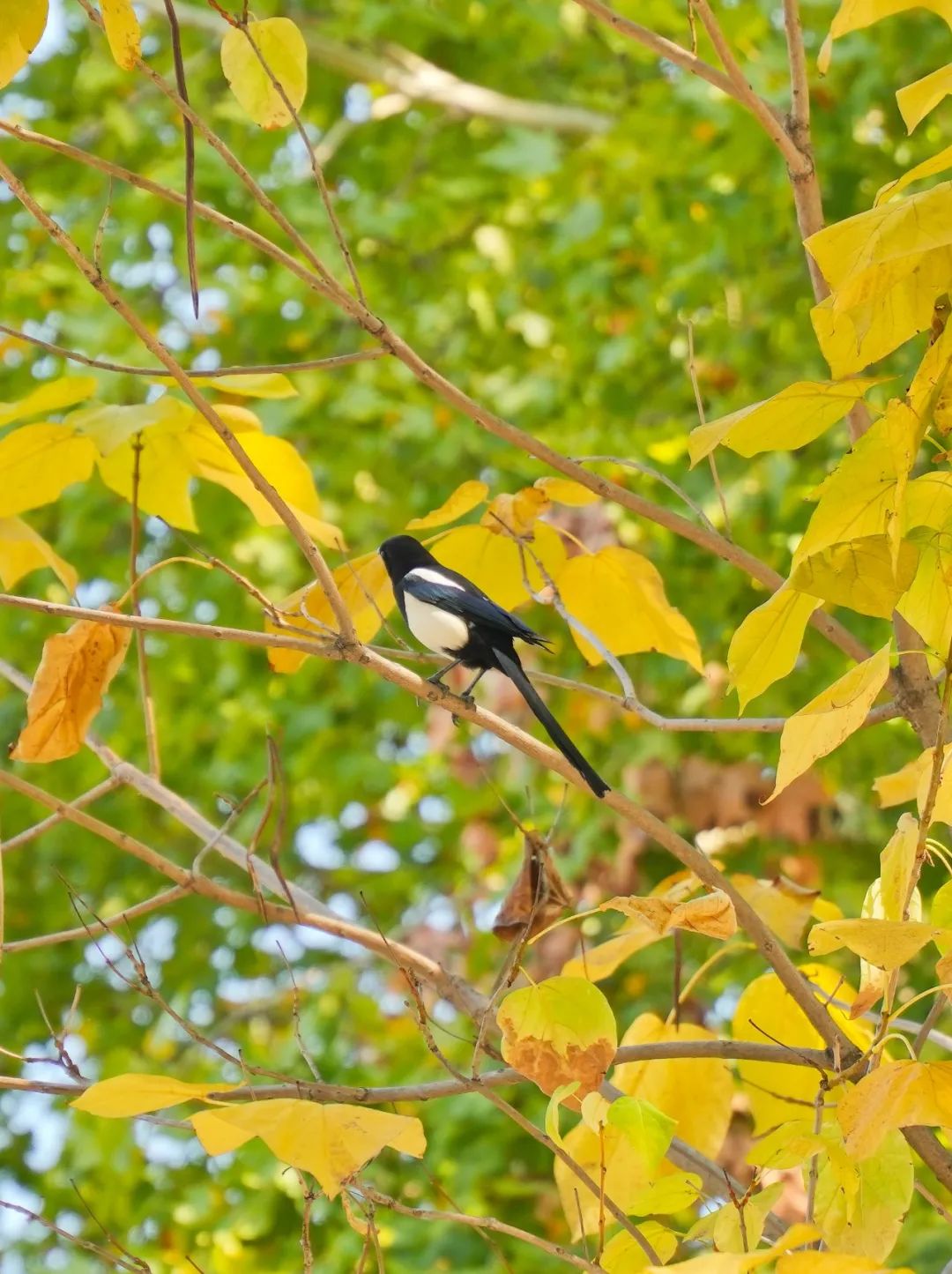 枝头斑斓的叶如花绽放 低头诉说秋的呢喃