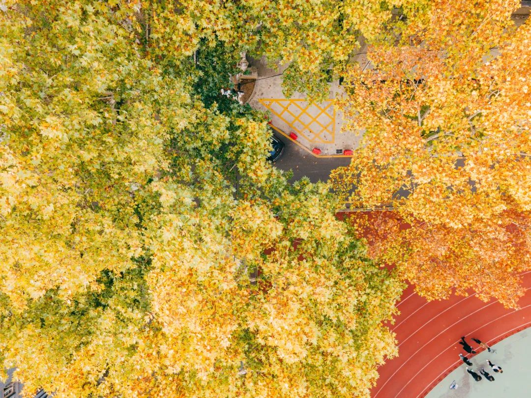 梧桐叶碰倒了胭脂,染了一身赤橙