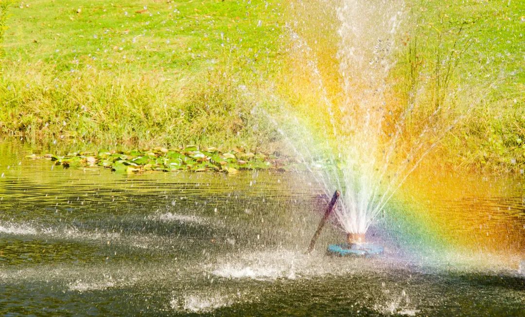 光与水的律动在粼粼波光上架起彩虹拱桥