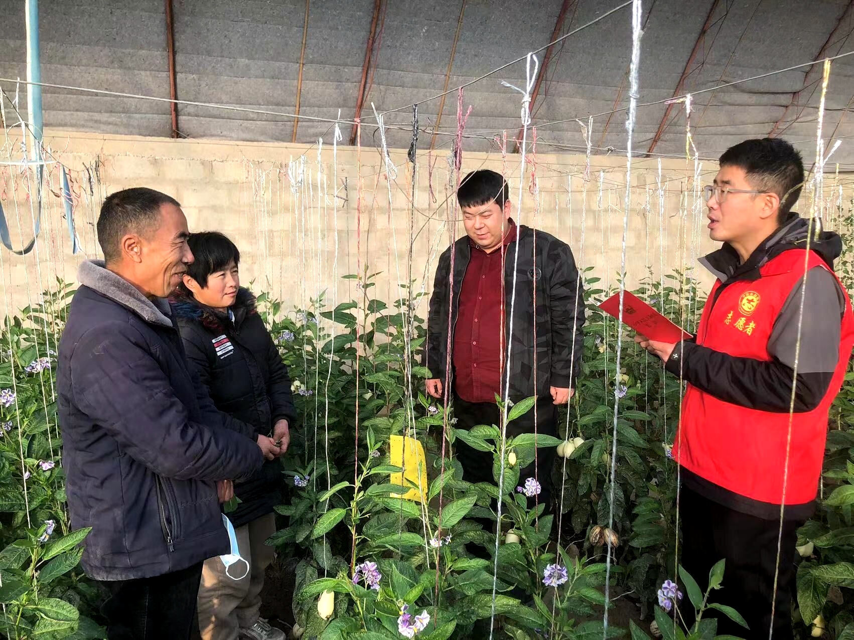 在金塔,群众在哪里,党的二十大精神“微讲堂”就搬到哪里。走进东坝镇榆树沟王成孔的温室大棚里,一股热浪扑面而来,人参果、小金瓜、韭菜等长势喜人,宣讲也正火热进行。