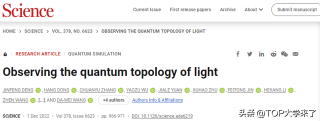 12月2日,浙江大学物理学院王浩华教授、宋超研究员和王大伟研究员在一个超导电路中实现了量化光的拓扑态实验,用它构建了一维和二维的福克态格子,相关成果以“Observing the quantum topology of light”为题发表在最新一期Science上。