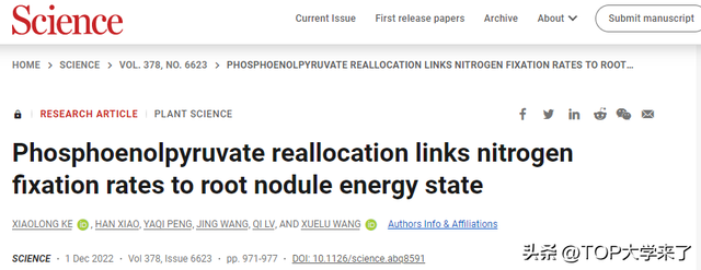 12月2日,河南大学省部共建作物逆境适应与改良国家重点实验室王学路教授团队在Science上发表了题为”Phosphoenolpyruvate reallocation links nitrogen fixation rates to root nodule energy state“的研究成果,揭示了大豆根瘤能量状态感受器及其调控共生固氮的新机制。