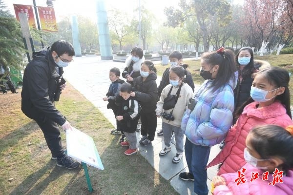 长江日报大武汉客户端讯(记者郭可滢 通讯员赵慧娟)10日,武汉市青少年进湿地研学教育活动走进月湖公园,“湿地小卫士”跟随自然导师忍冬观赏科普牌、认识常见鸟类,并用望远镜观察冬天月湖公园的鸟儿日常行为。值得一提的是,这批鸟类科普牌出自“湿地小卫士”之手,活泼的语言、童趣的画风,引得游客们纷纷驻足欣赏。