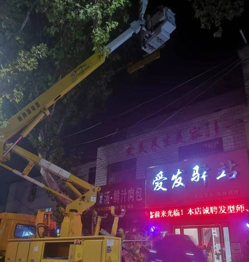 当天晚上,施工人员来到该路段,先对高压电路实施停电,然后借助升降机对高压线附近的树枝再次进行大面积修剪。随后,网格员和工作人员又将修剪下来的树枝清理干净,确保行人车辆通行安全。这一幕,让周围群众纷纷称赞:“这几颗大树的树枝压在高压电线上,有时还会发出滋滋声,我们每天都提心吊胆,感谢街道社区积极协调,两次修剪彻底消除隐患,这下我们再也不用担心了。”