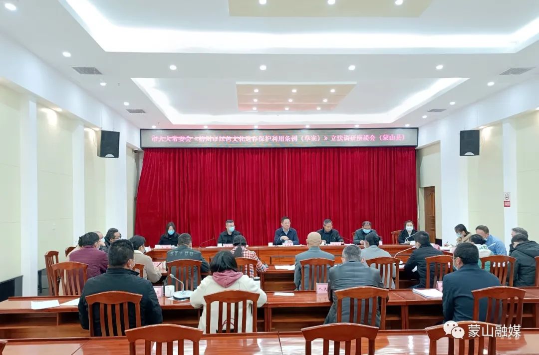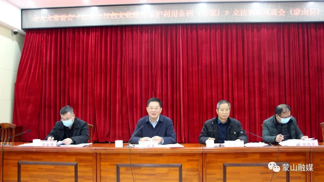 认真听取我县人大、政府以及有关部门关于《梧州市红色文化遗存保护利用条例(草案)》意见建议和情况汇报后,曾健勇认为,蒙山县委、人大、政府高度重视立法工作,认真研读了条例草案,结合自己的职责、工作实际认真思考、提出了很多非常中肯的意见建议。