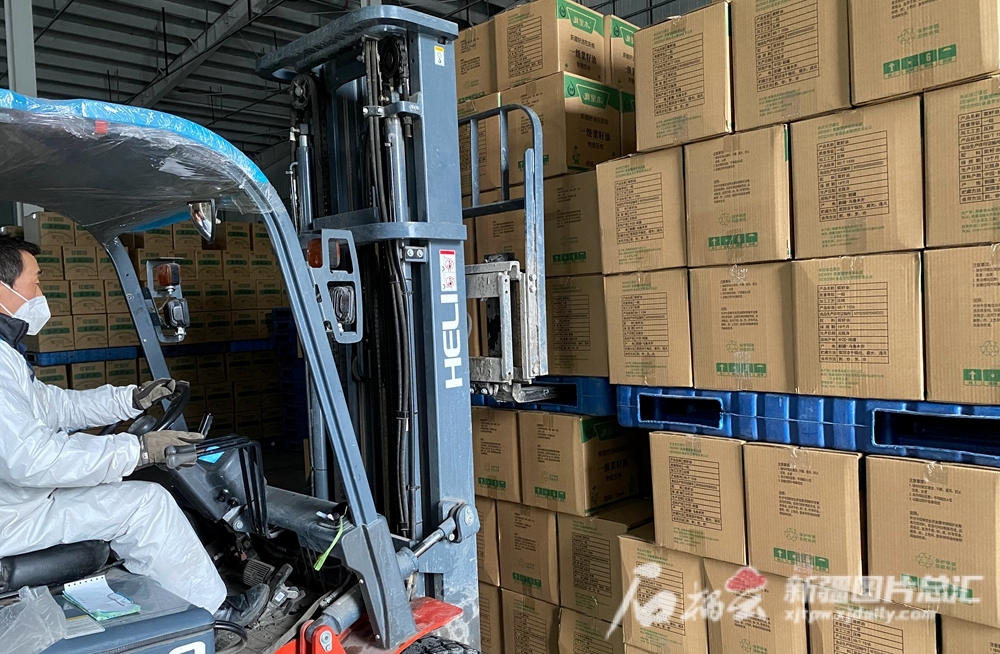 12月6日,位于乌鲁木齐经济技术开发区(头屯河区)的新疆新粮油脂有限责任公司,工作人员正在成品库房忙碌。近段时间,随着乌鲁木齐疫情防控形势持续向好,各企业生产进度进一步加快。庞海涛 摄