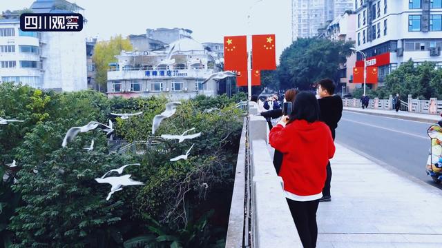 冬日岷江,碧水荡漾。成群来自远方的红嘴鸥,时而在水面上巡游飞舞,时而用翅膀拍打水花,时而飞向人群互动嬉戏。它们的来到,吸引了很多市民关注的目光。