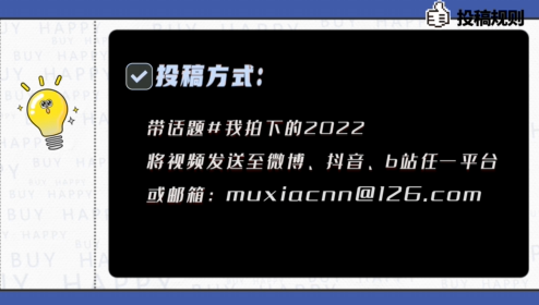 12月12日0点至12月15日0点,带话题#我拍下的2022 (备注拍摄时间地点)自行上传视频,或将视频发送至邮箱muxiacnn@126.com。一旦投稿入选,我们将为你送上四川观察六周年定制纪念礼品。