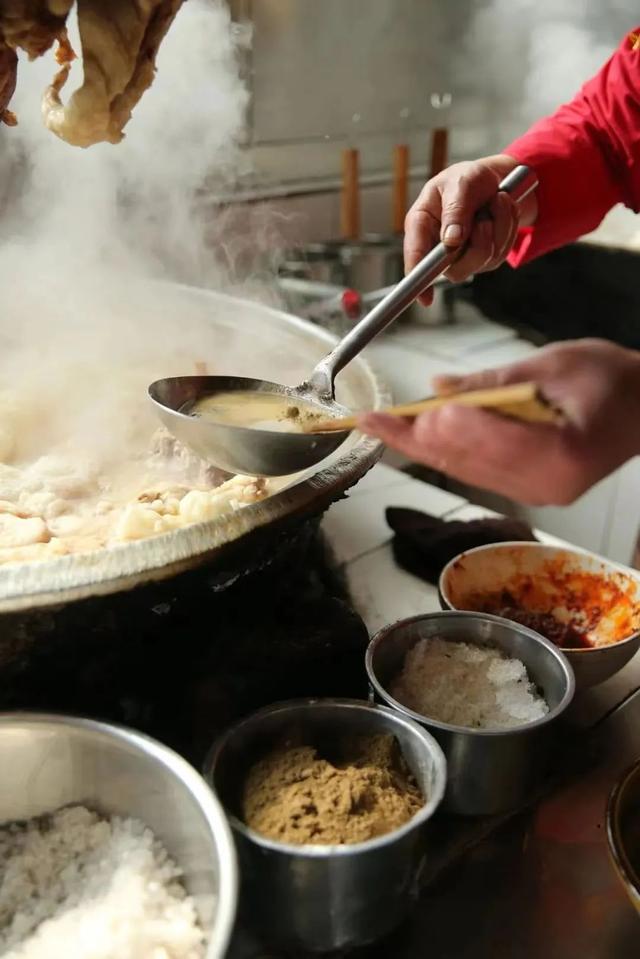 它烹制精细,料重味醇,肉烂汤浓,肥而不腻,营养丰富,香气四溢,诱人食欲......精选鲜肉、鲜骨头一起放进铁锅,先是大火熬煮,紧接着微火慢炖,使羊肉的精华完全溶于水中,看似简单,但其背后却有着很深的门道。