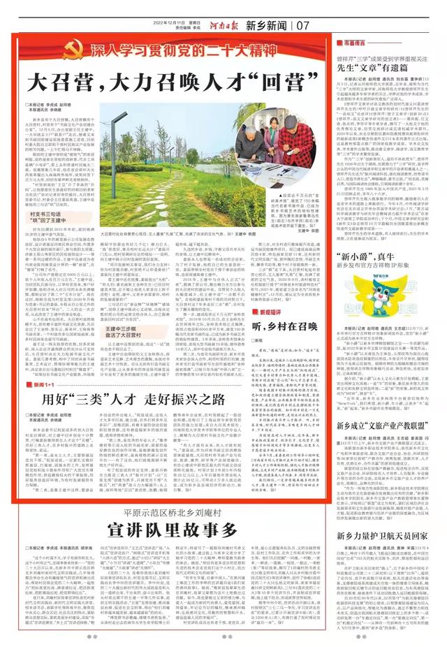 为促使农村人才回流,近年来,新乡市采取政策助才、经济引才、文化育才、情感留才和环境吸才等多项措施,让更多人才愿意返乡就业创业。