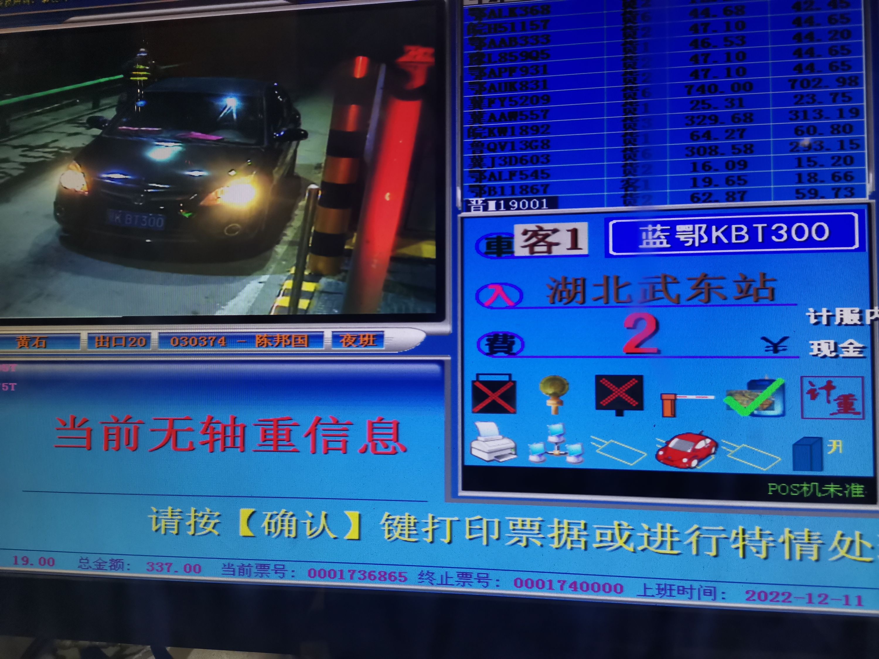 “金额:2.00元。”12月11日0时10分,赵先生开车走武黄高速从武汉到黄石,出黄石收费站道口时收费系统显示收费2元。
