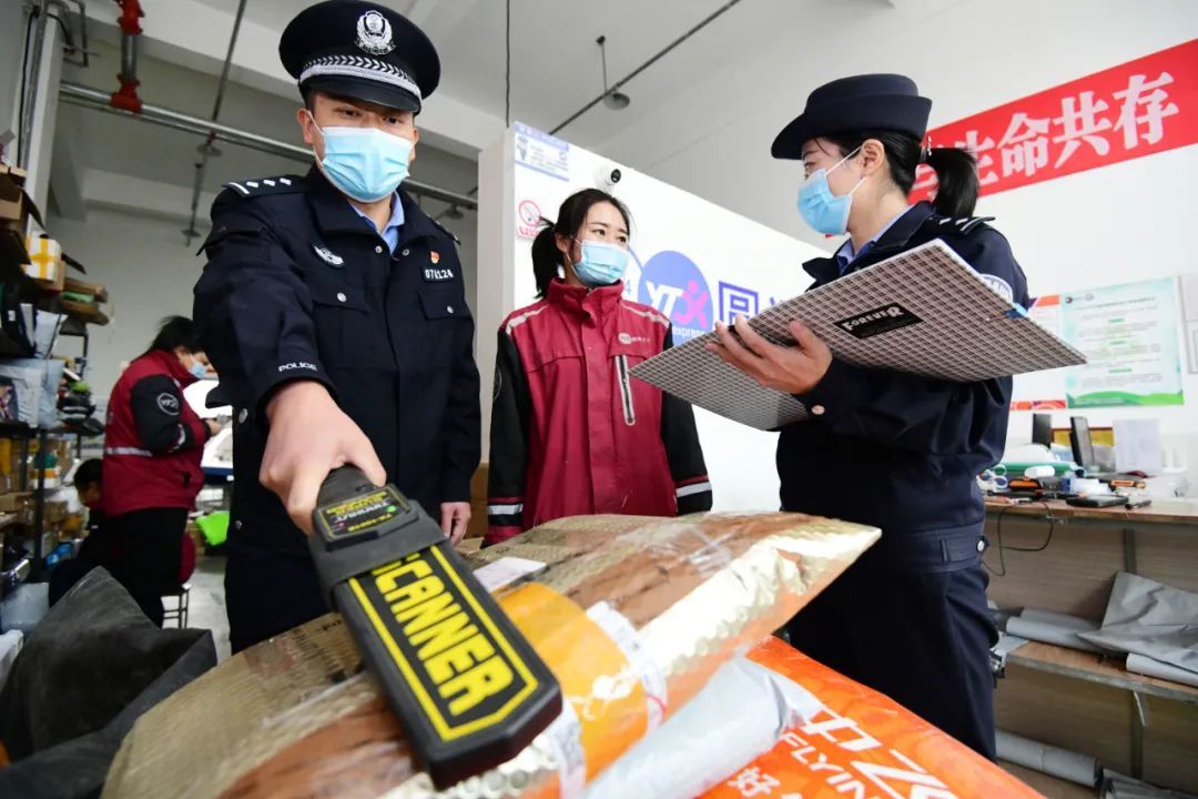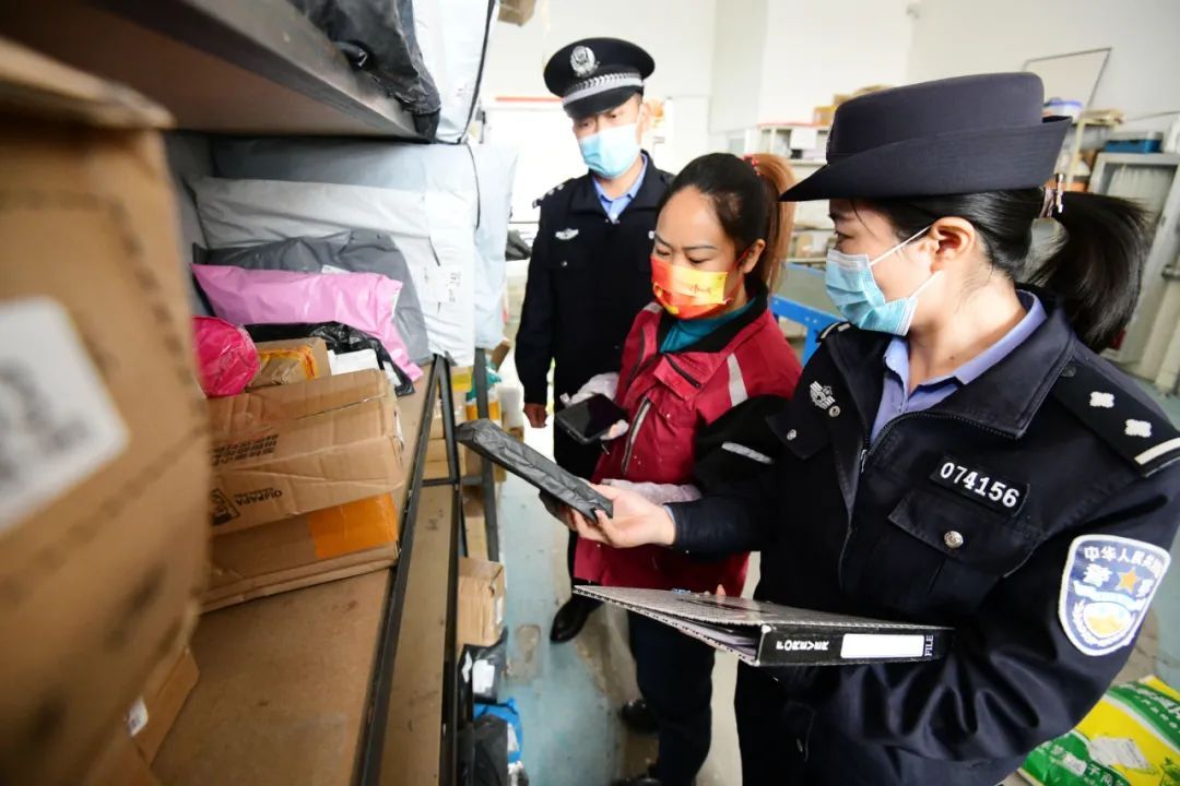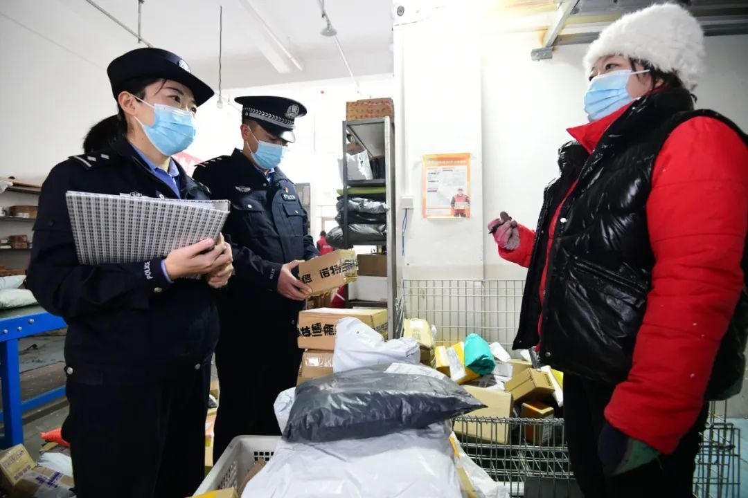 “双十二”即将来临,12月10日,临泽县公安局开发区派出所民警在开展“一标三实”信息采集的同时,对全县寄递物流业开展拉网式专项检查,重点查看是否落实实名登记、视频监控是否清晰、视频资料保存时间以及场所消防措施是否达标等情况,要求各行业负责人提高安全防范意识和物品甄别能力,严格落实邮件收寄验视制度,做好发货实名登记台账,严防不法分子利用物流寄递渠道,从事贩运违禁物品等违法犯罪活动。图为民警检查快递包裹来源。