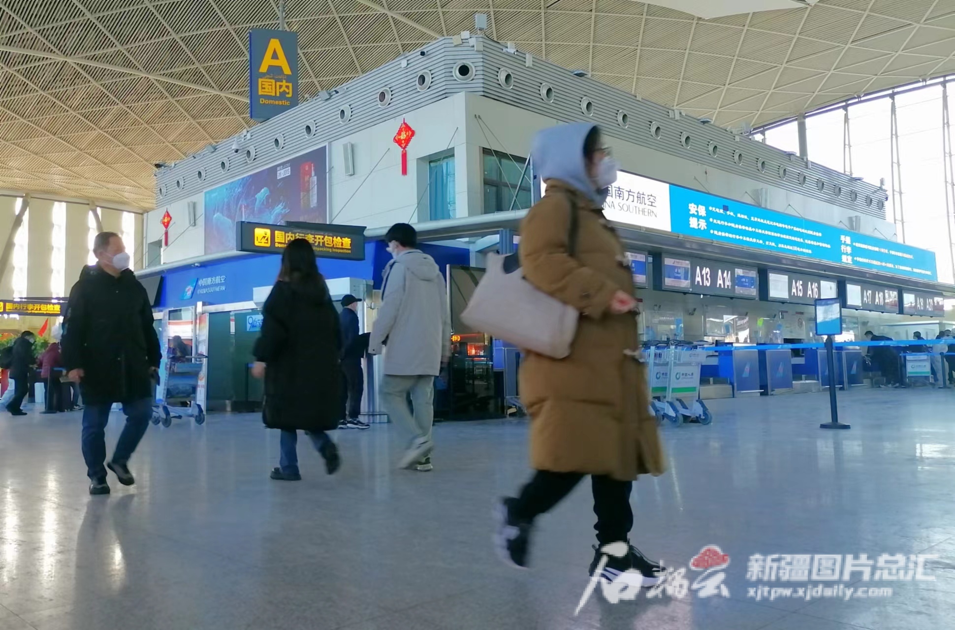 12月11日,旅客在乌鲁木齐地窝堡国际机场T3航站楼行走。石榴云/新疆日报记者 蔡增乐摄