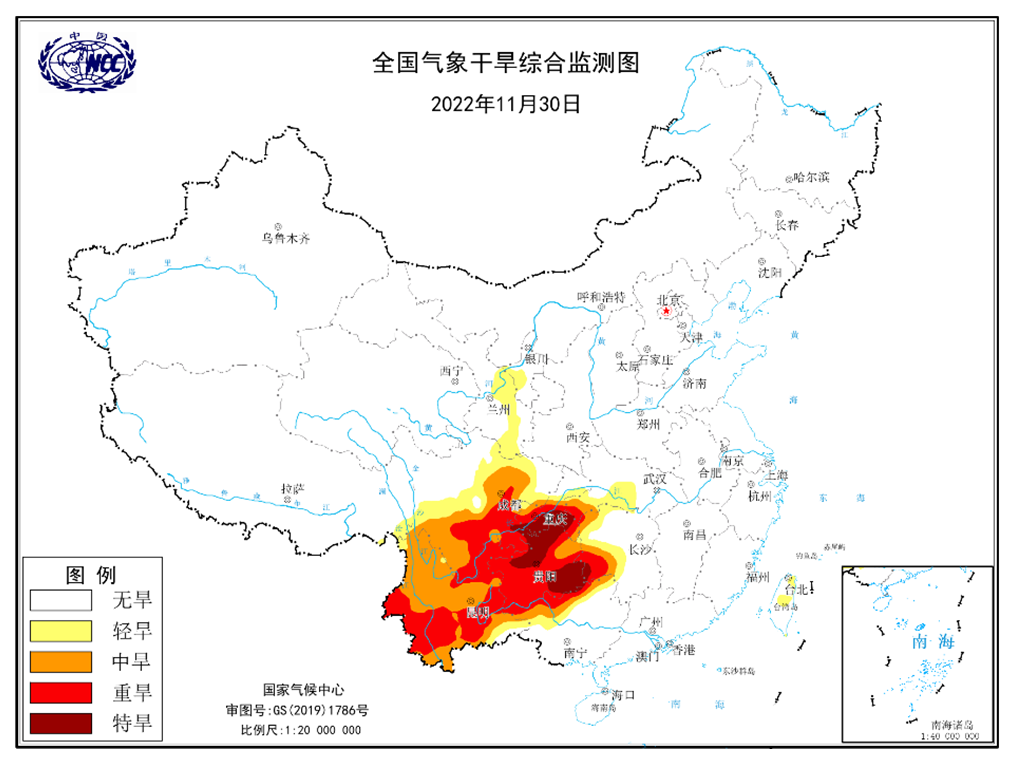 图5 2022年11月30日全国气象干旱监测图