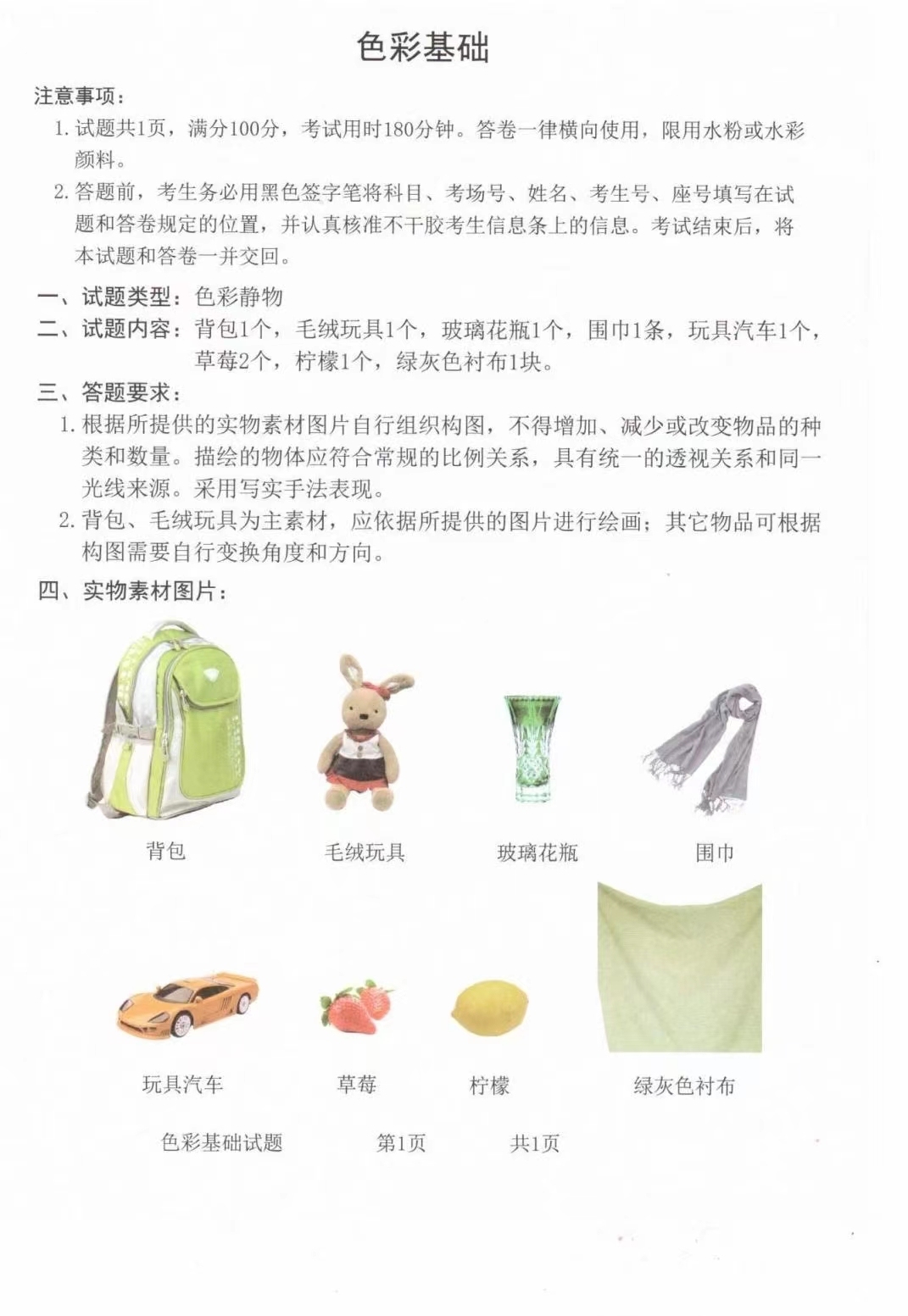 色彩部分的考试素材有背包、毛绒玩具、玻璃花瓶、围巾、玩具汽车、草莓、柠檬和绿灰色衬布。“这些都是常见的生活类素材,没有特别偏门的素材出现,所以难度还可以。与往年相较,2023年美术统考色彩注重学生对色调的整体把握。”陈嵩介绍,素材中的背包、玻璃花瓶、灰绿色衬布均为绿色元素,考查学生对同类色的区分和画面变化的把控能力。同时考虑到物体比较多,还考查考生对主要素材深入刻画能力。(观海新闻/青岛晚报 记者 王晓雨)