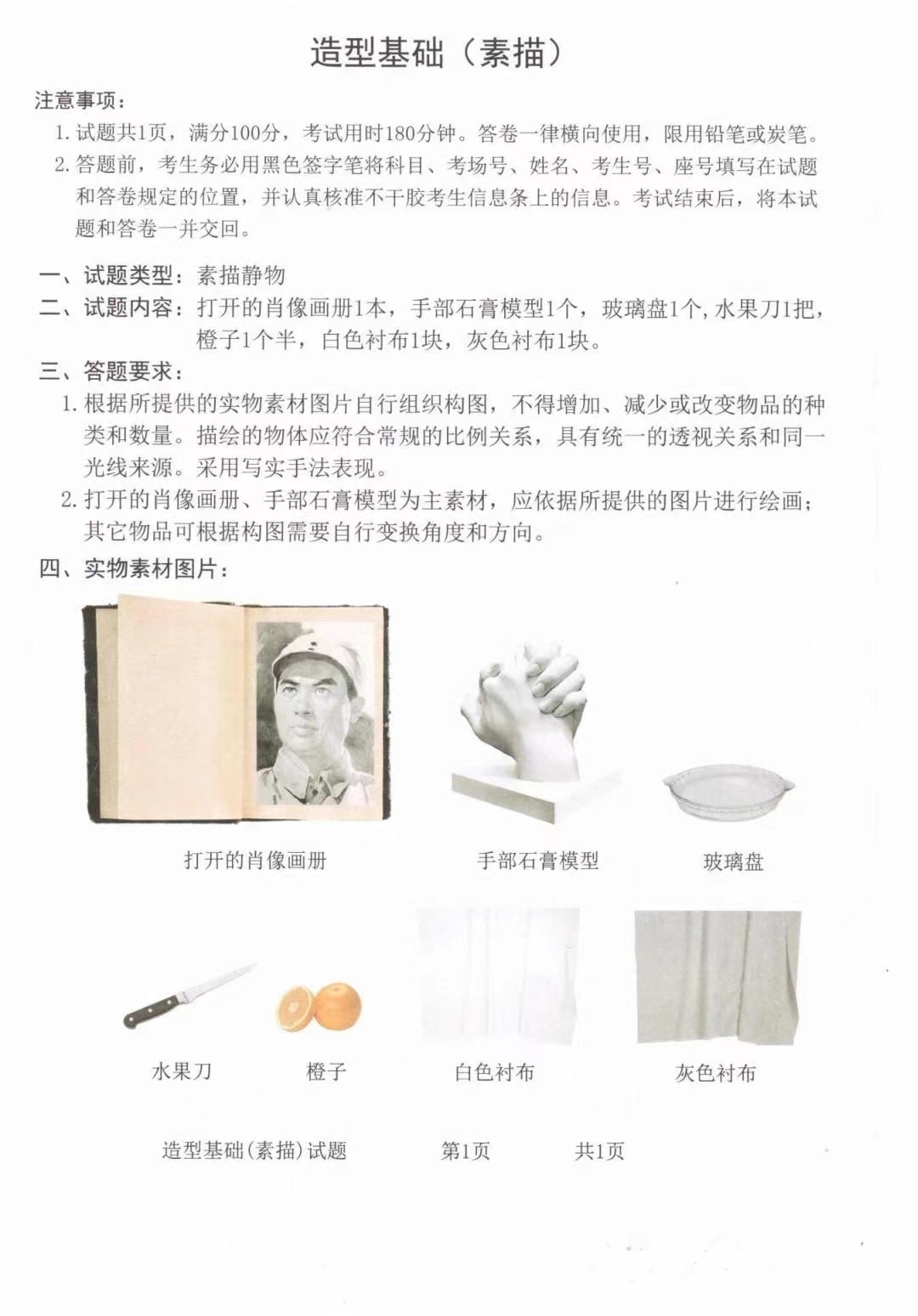 “山东省2023年美术类统考试题整体难度与往年持平,难易适中。”青岛六中美术教研组副组长陈嵩告诉记者,2023年美术统考试题延续了往年的命题思路,题目难度与前几年差别不大。“素描延续了2021年、2022年的考查方向,与2021年的考题较为接近。2021年素描给出的两个主素材是带有人物肖像的画板和手部石膏模型,2023年素描的主素材之一仍然是手部石膏模型,主素材之二是打开的肖像画册,两年的主素材高度类似。”他介绍,素描试题中给出的7个实物素材——打开的肖像画册、手部石膏模型、玻璃盘、水果刀、橙子、白色衬布、灰色衬布——都是平时学生练习过的常见素材。考试内容看似复杂,实际上涵盖了静物、石膏、人物肖像,均为学生日常经常练习的常规内容,试题以静物的形式,把高中学生素描造型需要掌握的知识统一在同个画面中。“两大主素材之一的手部石膏模型,注重考查学生造型能力,反映学生的基本功;主素材之二的人物肖像,则涉及到人体肌肉骨骼等知识,考查学生对人物头像素描的理解。”陈嵩透露,因为这几年统考素描试题变化不大,考生对考查素材和考查方向相对熟悉,考前学校也有针对性练习,所以素描难度不大,但对造型能力偏弱的学生不太友好。“与前几年素描试题相比较,2023年试题各个元素中黑白灰的对比不是特别明确,7个素材基本以白色调为主,这就要求考生在物体的摆放、画面整体效果上多动脑筋。”