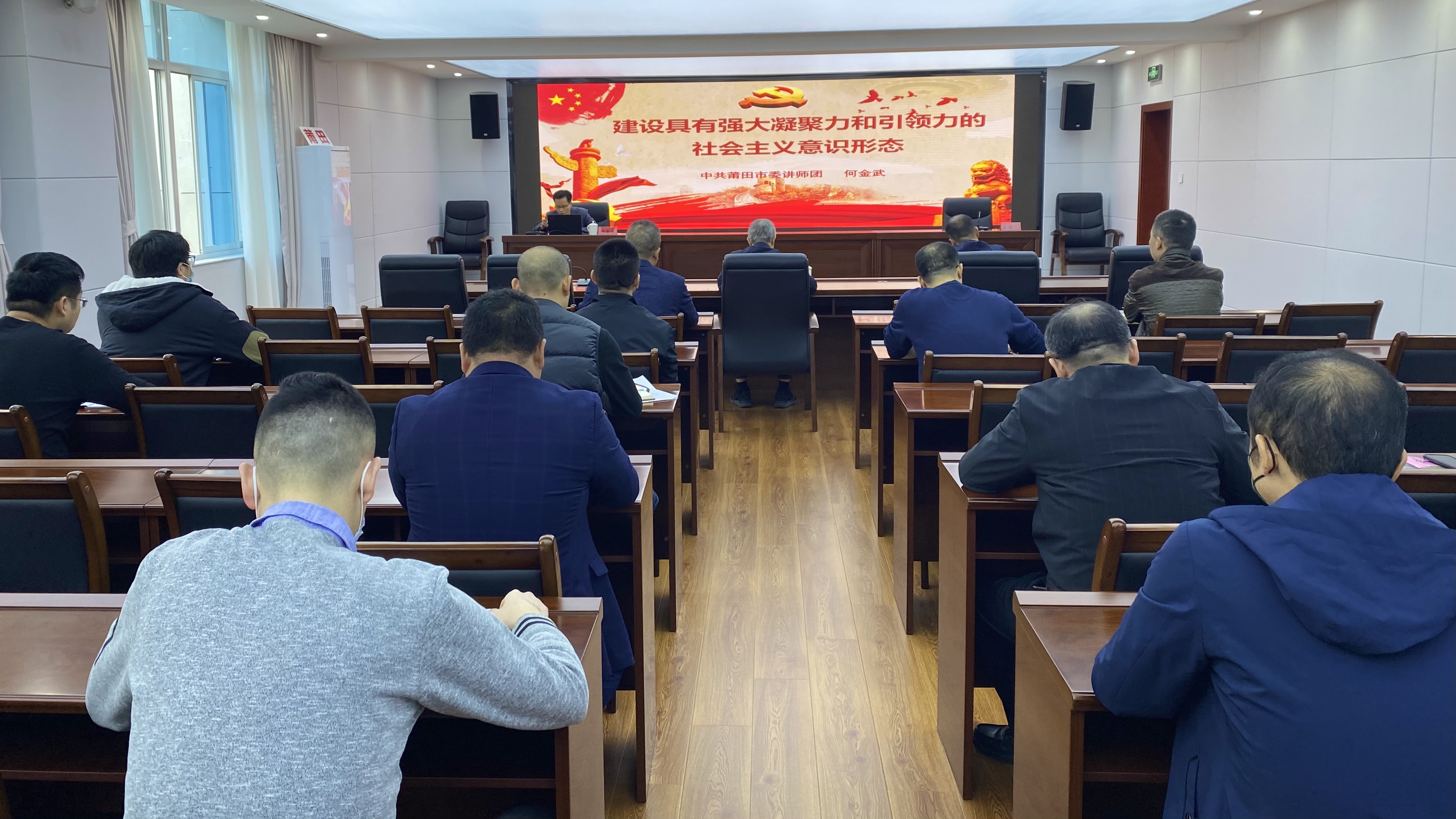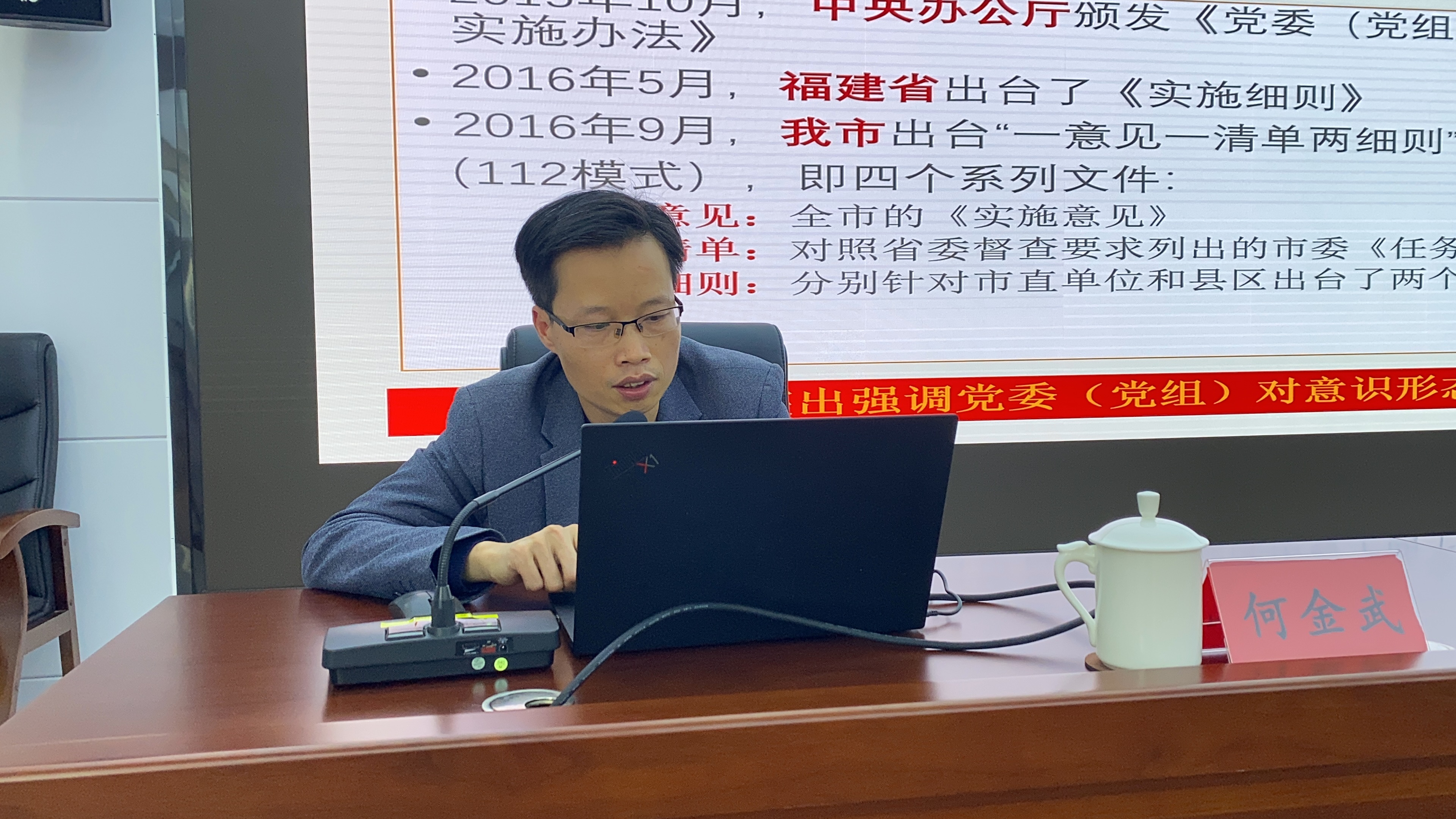 12月9日,莆田市“理响莆阳”宣讲队成员、市委讲师团办公室主任何金武深入莆田市应急管理局,为全体党员干部作《建设具有强大凝聚力和引领力的社会主义意识形态》专题培训辅导。
