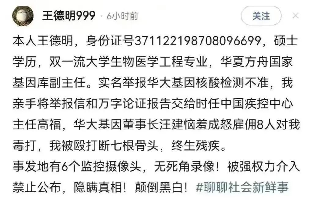 据华大基因描述,此后王德明反而变本加厉扭曲事实、编造谎言,通过个人自媒体持续诋毁华大。