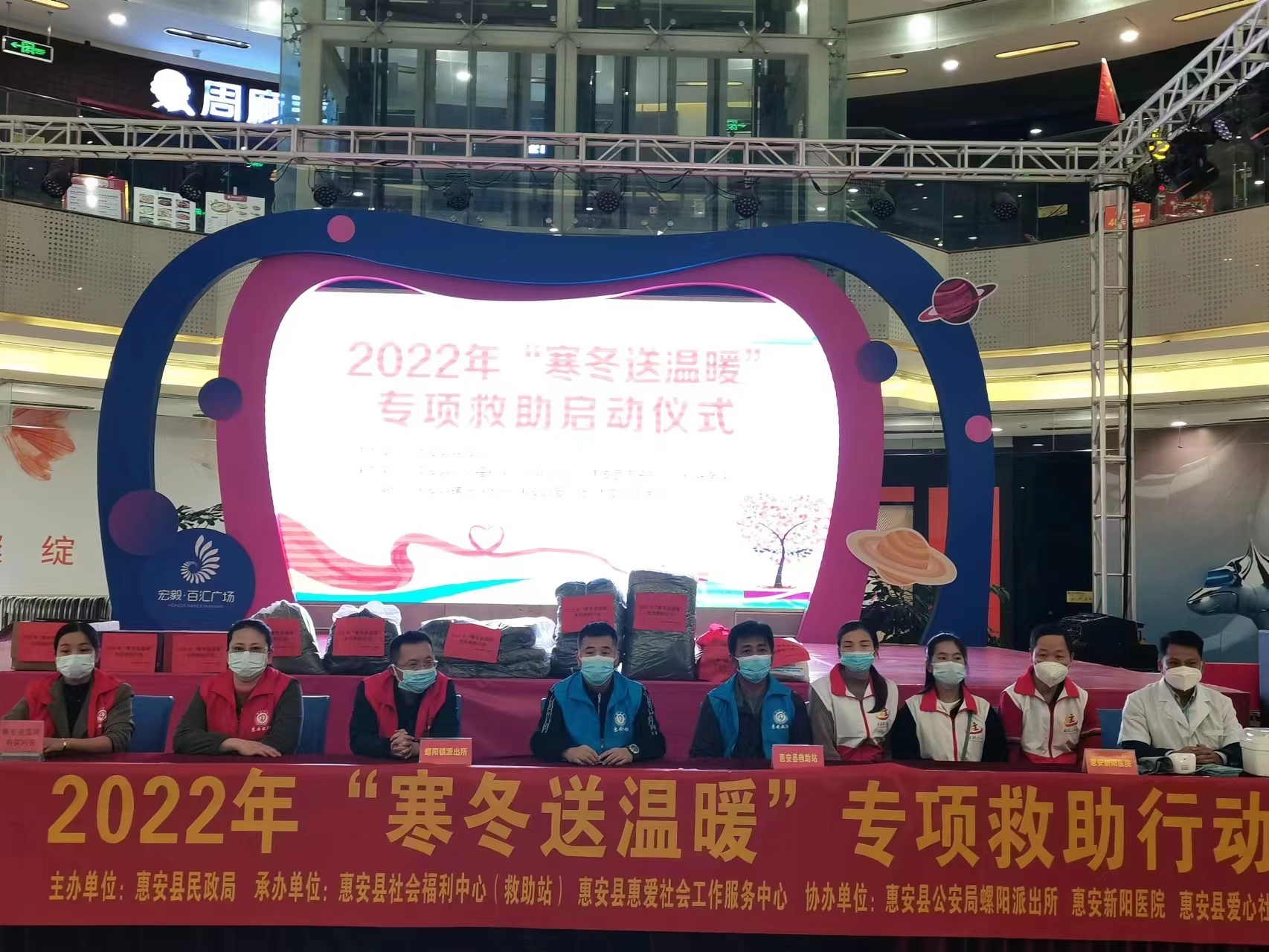 为加强冬季救助管理工作,发挥“兜底线,救急难”的作用,切实保障生活无着流浪乞讨人员温暖安全过冬,由惠安县民政局主办,惠安县救助站、惠安县惠爱社会工作服务中心承办的2022年“寒冬送温暖”专项救助行动于12月9日下午在宏毅百汇商场举行启动仪式。