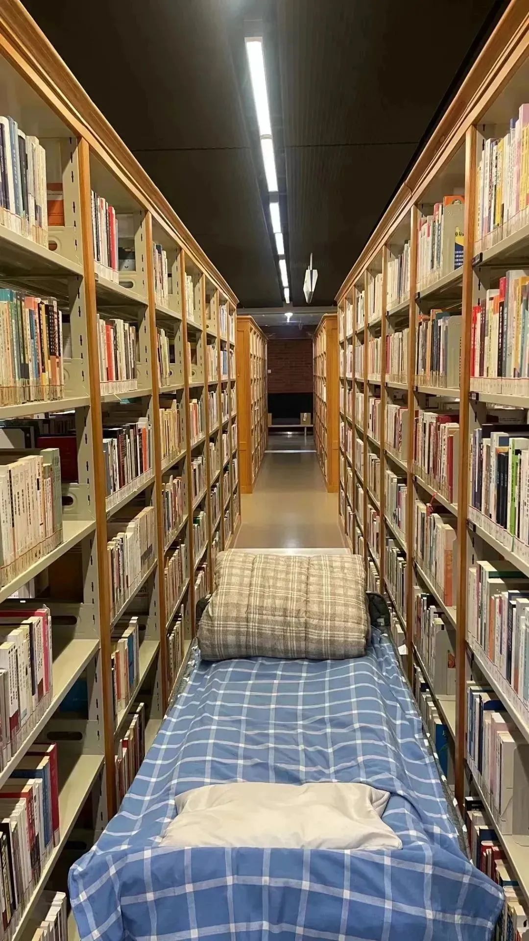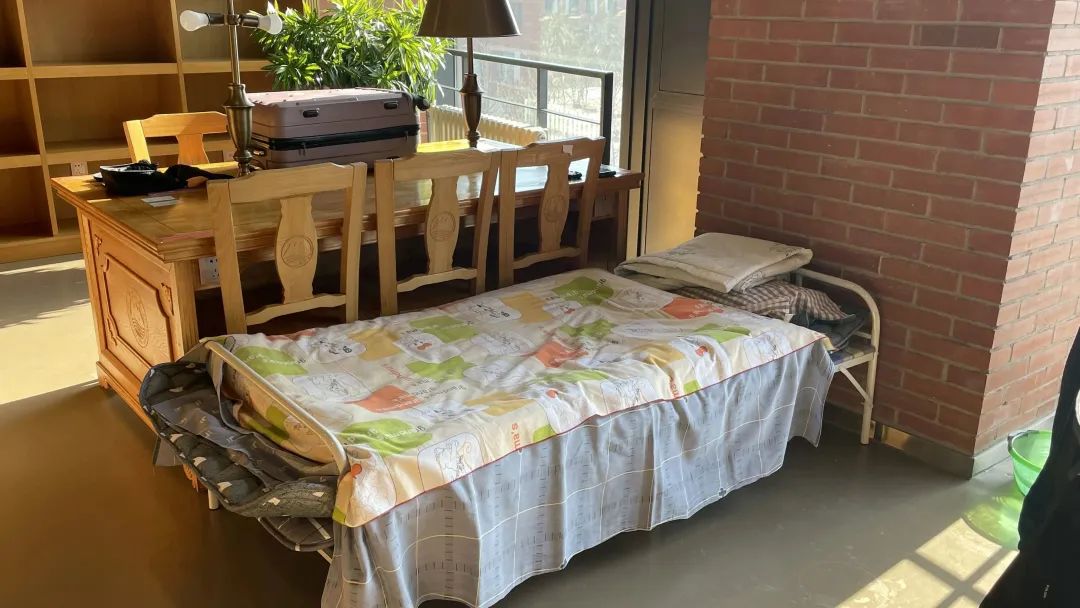 驰援浑南校区的教工将床铺放在图书馆内