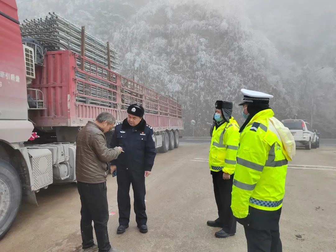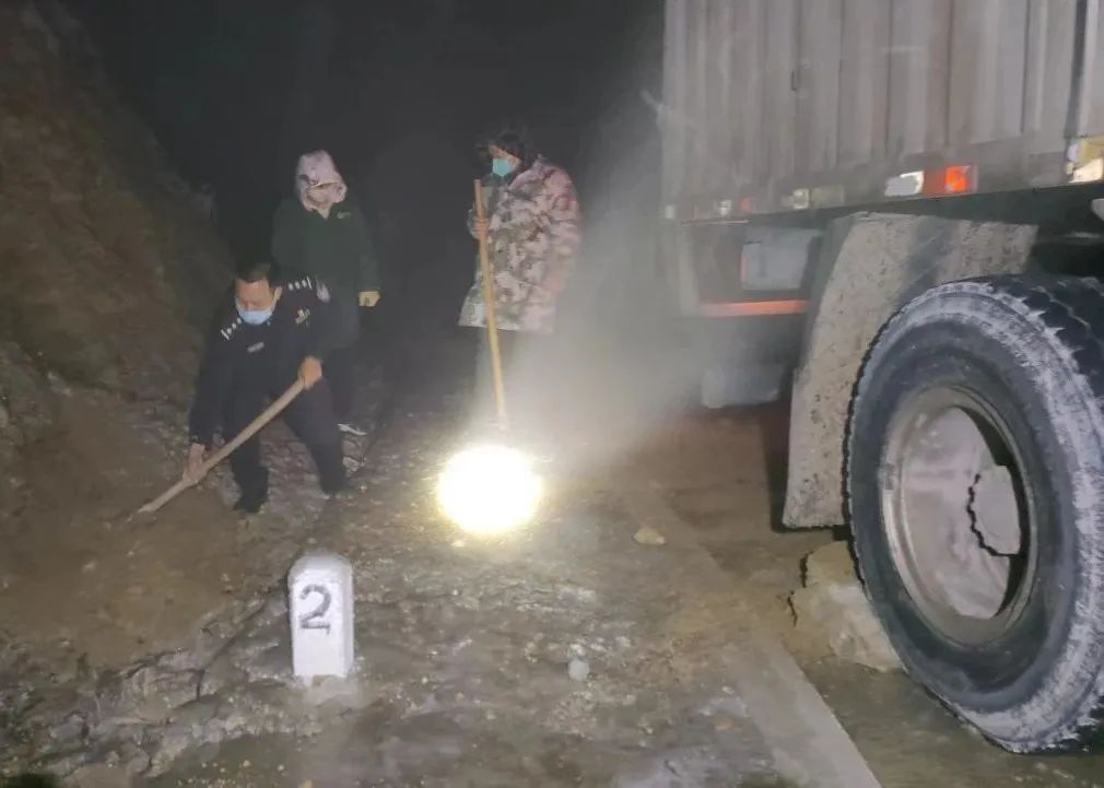 12月2日晚上21时许,资源县瓜里派出所值班民警接到群众求助,称一辆大货车在途经瓜里乡水头村一处山道时遇到路面结冰无法通行……值班民警杨文权接到报警后立即召集所里警力备齐救援物资,随后火速赶往现场救援。
