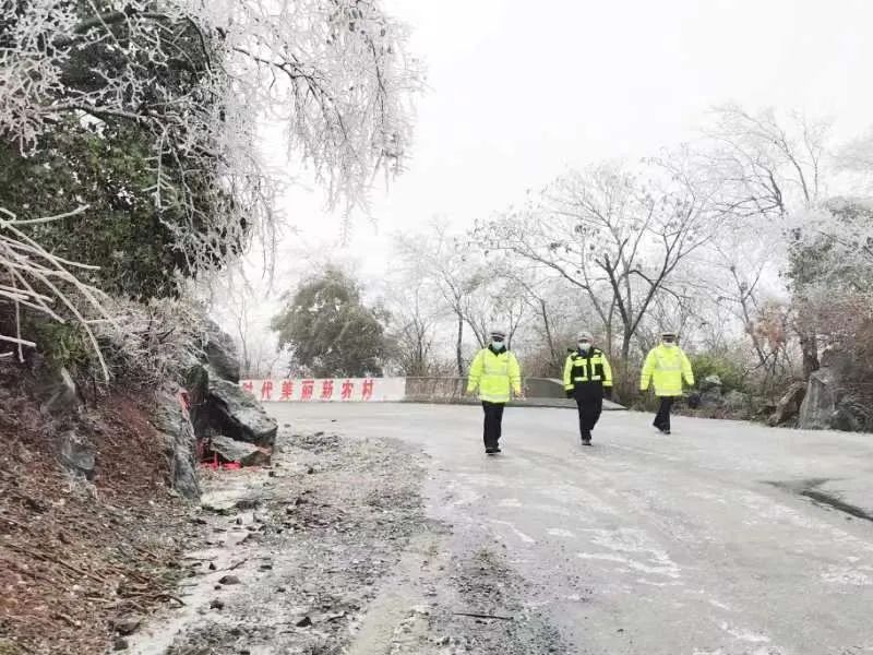 受强冷空气影响,全州县出现冰雪天气。全州县公安局时刻以“人民为中心”,迅速组织警力上路面、查隐患、抗冰雪、助群众。上图为交警部门在冰雪路段巡查,查看路况,排除安全隐患,及时提醒群众出行安全。