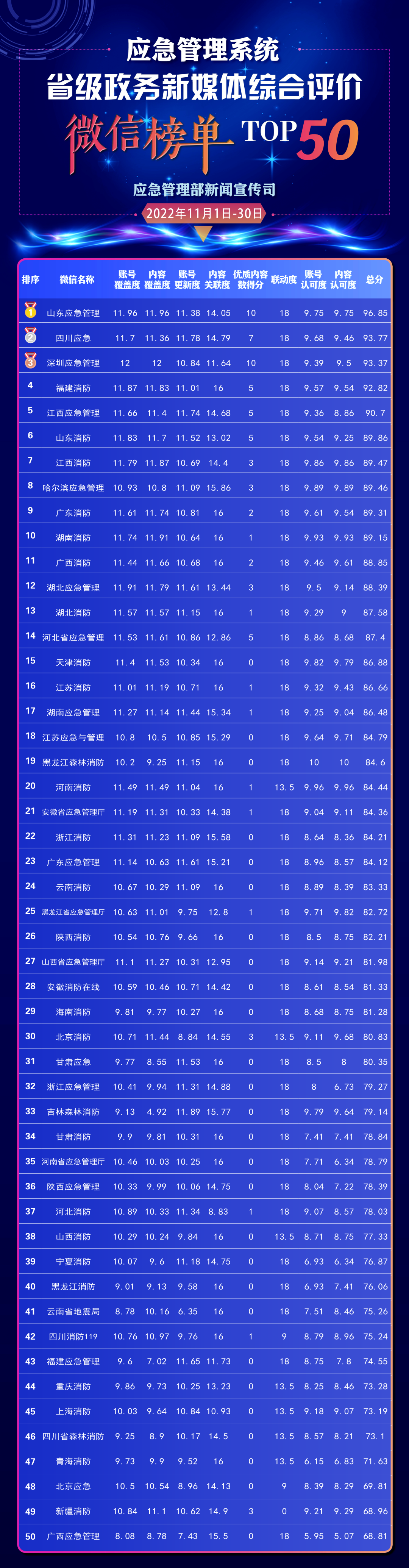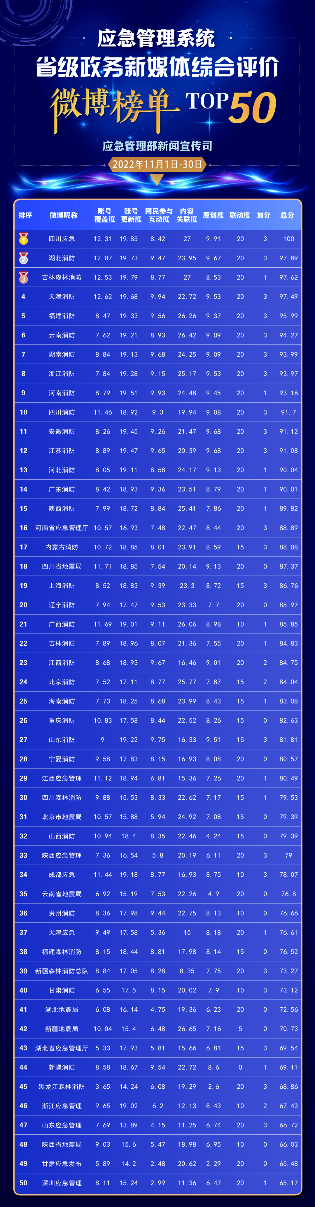 应急管理系统省级政务新媒体综合评价11月榜单发布